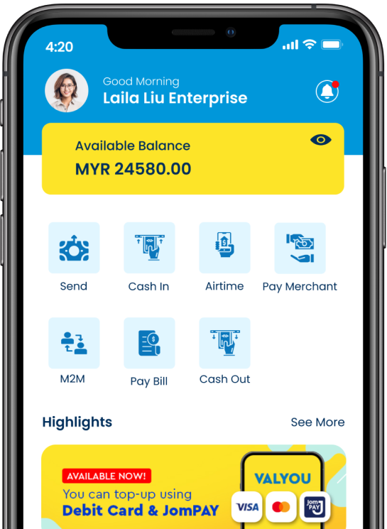 Our mobile wallet app also features convenient peer-to-peer transfers, prepaid top-ups, bill payments, and more. Experience the power of Valyou today!